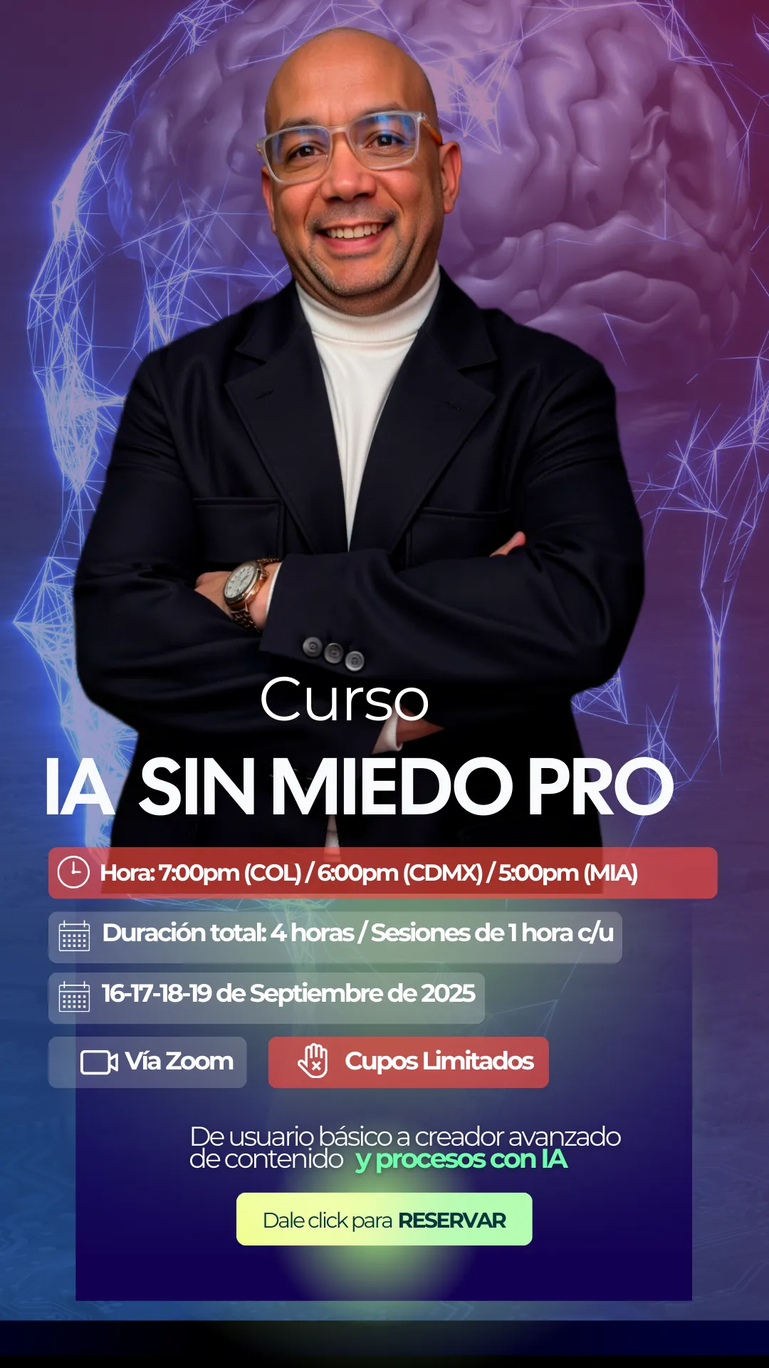 Que los participantes dominen las herramientas más poderosas de IA para crear imágenes, editar videos, generar textos, y automatizar procesos completos que conecten con clientes y potencien sus negocios o proyectos personales